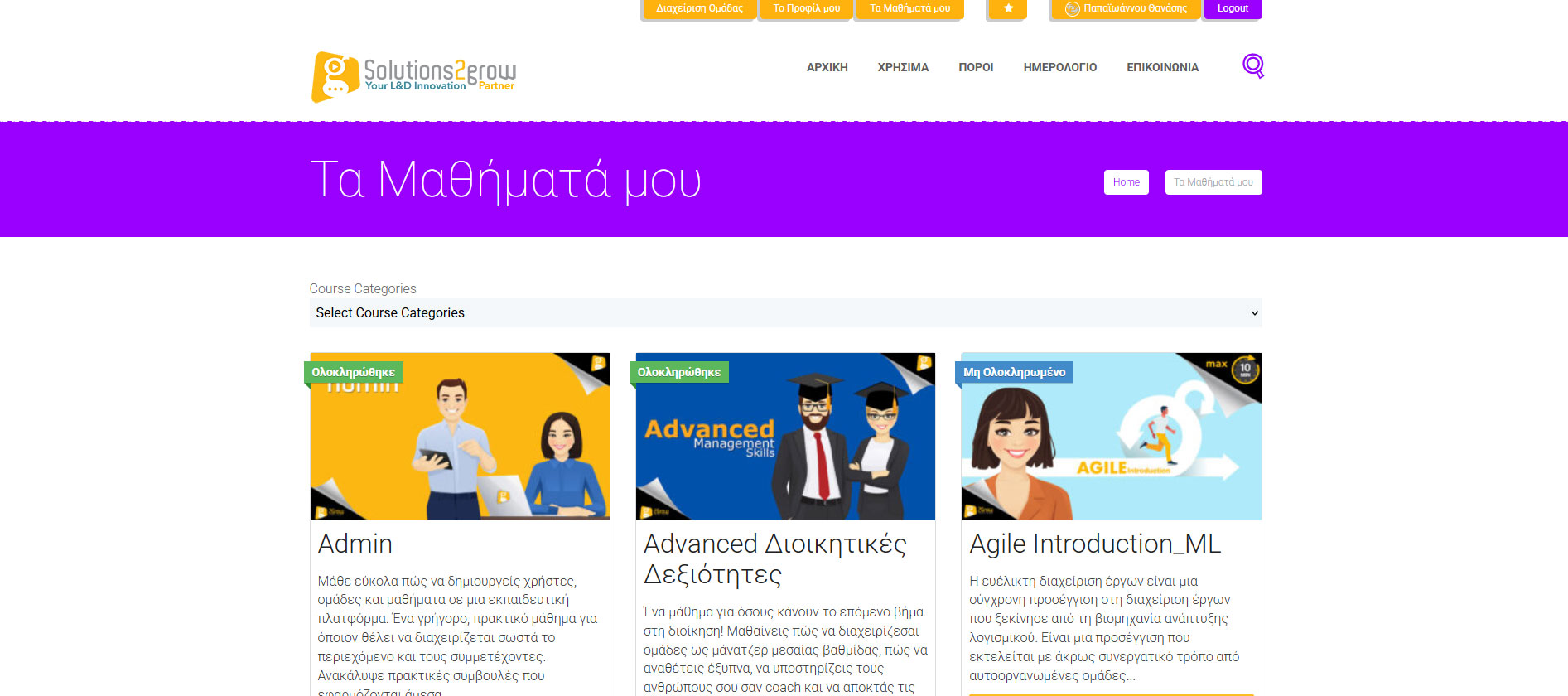 Καλώς ήρθατε στην πλατφόρμα eLearning 1. Κάντε κλικ στο “Login” στο μπλε Μενού επάνω δεξιά 2. Εισάγετε το “Ψευδώνυμο” ή την “Ηλεκτρονική σας διεύθυνση (email)” Βάλτε το συνθηματικό σας (password) Κάντε κλικ στο “Login” 3. Τώρα βρίσκεστε μέσα στον λογαριασμό σας και μπορείτε να κάνετε κλικ στα μαθήματα σας για να τα δείτε και να ξεκινήσετε!